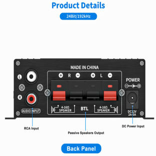 RCA Input, 2.0 CH, 4-16 Ohm speakers
