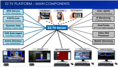 Designed to seamlessly integrate with any IT environment and run on all types of networks: LAN, WAN and Wireless - EZ TV is the ideal solution for enterprise customers, sports stadiums