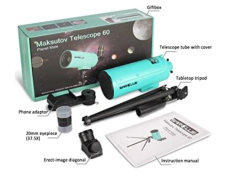 Mak60 Telescope, 60mm Aperture 750mm Focal Length, with Phone Mount Tripod, for observing the Moon, Planets and
